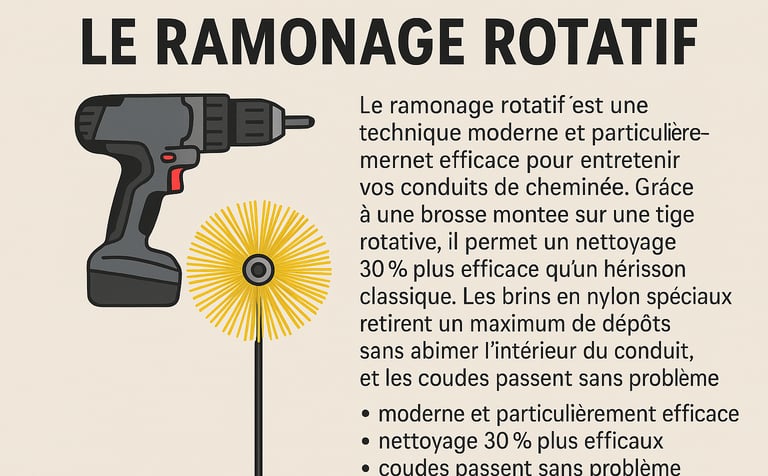 Ramonage rotatif pour un résultat plus efficace sur les conduits difficiles